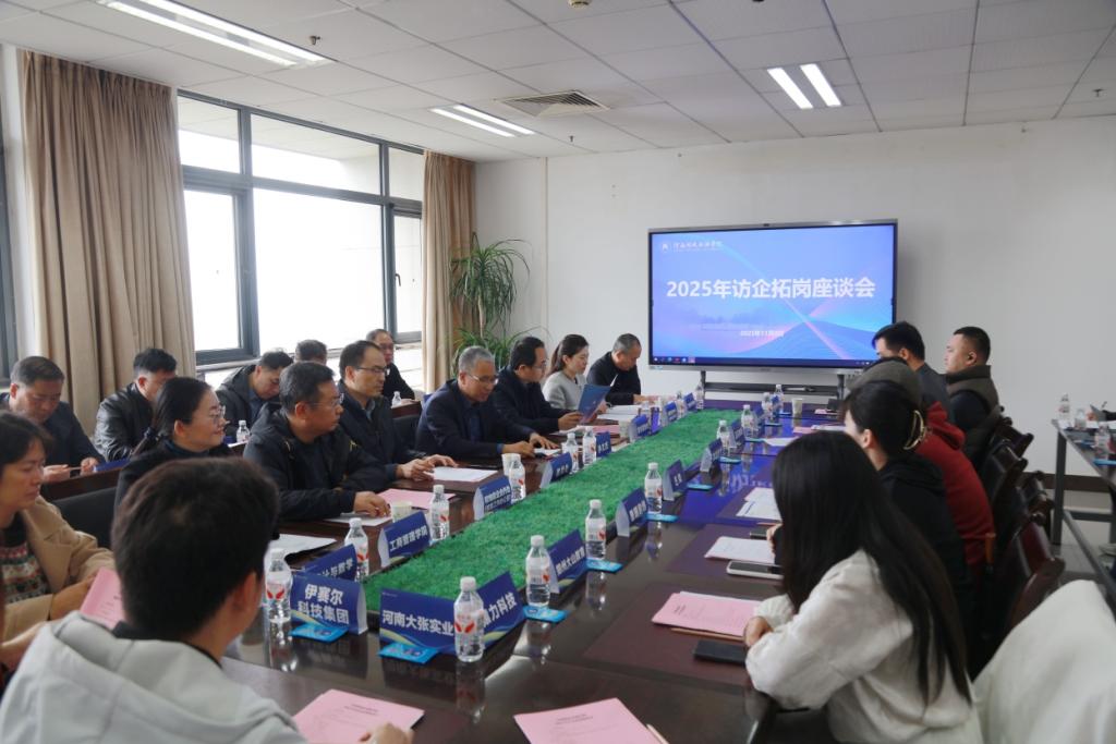 双选会期间,孙文杰主持召开访企拓岗座谈会。教务处、招生就业处、校地校企合作处(校友工作办公室)、创新创业中心(创新创业学院)、工商管理学院、外国语学院、文化与传播学院、工程经济学院、艺术设计学院、计算机与人工智能学院、统计与数学学院、会计学院、旅游管理学院等部门和学院负责同志,与巴奴毛肚火锅有限公司、郑州高途云集教育科技有限公司、北京思明启创科技有限公司、河南正弘物业管理有限公司、郑州市金水区大山科技培训有限公司、郑州当歌几何影视有限公司、北京学而思教育科技有限公司、河南大张实业有限公司、河南伊赛尔电子商务有限公司等9家企业代表共同参会,围绕校企协同育人、实习见习基地建设、毕业生专业能力提升、职业素养培育等议题进行了深入探讨,部分学院与参会企业初步达成合作意向。